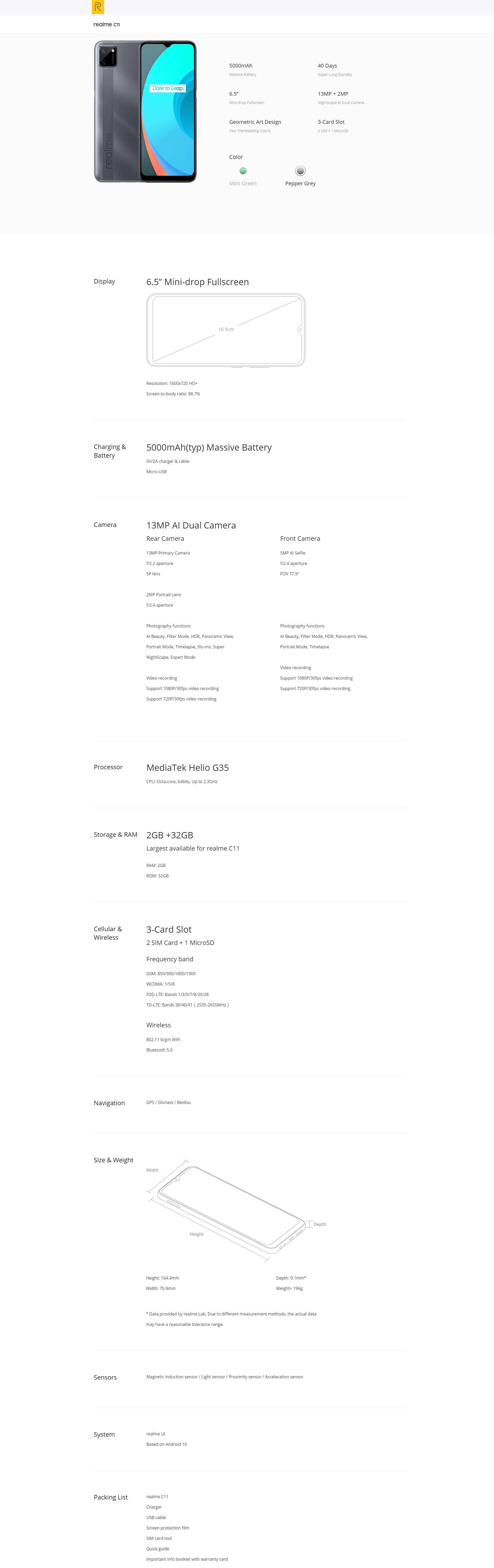Realme C11 (2+32GB | 3+32GB) - Mint Green | Pepper Grey**1 Year Warranty