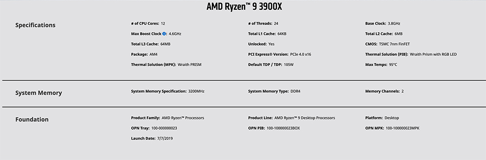 Base Clock 3.8GHzSystem Memory Specification: 3200MHz