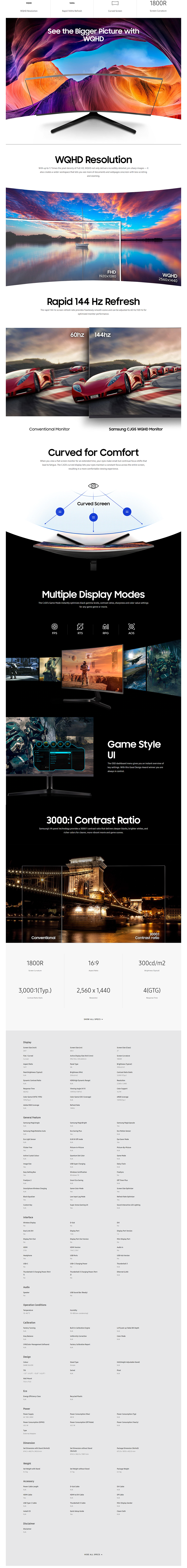 - Immersive viewing experience with curved screen