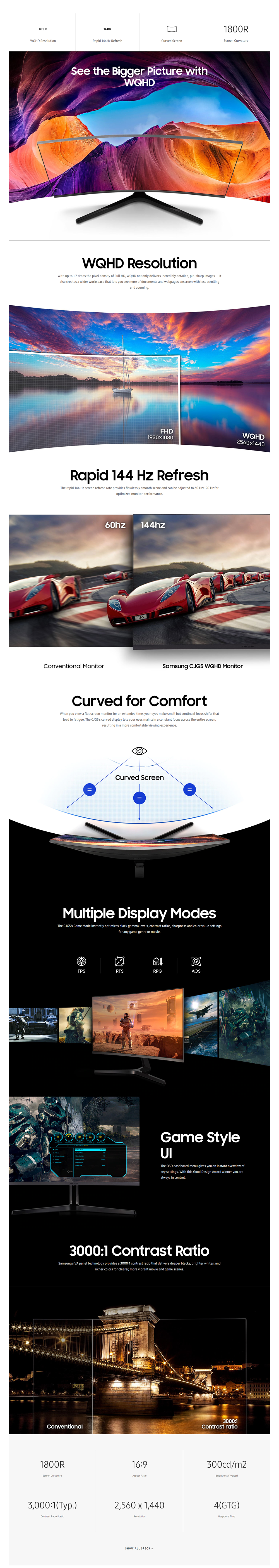 - Immersive viewing experience with curved screen