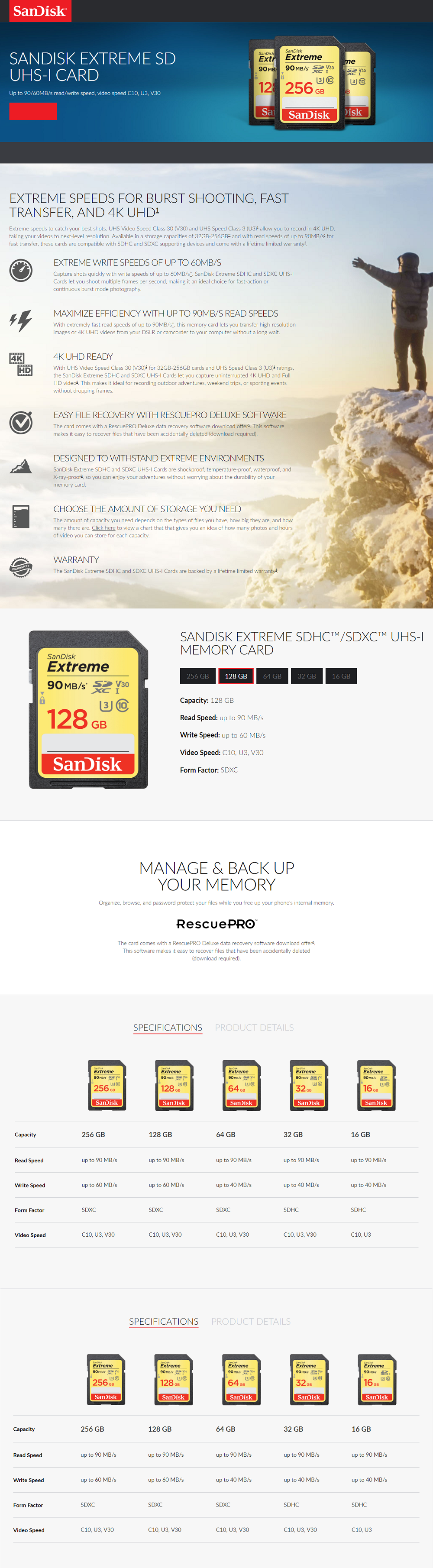 1x SanDisk Extreme SDHC SD 256GB UHS-I Memory Card (90MB/S)