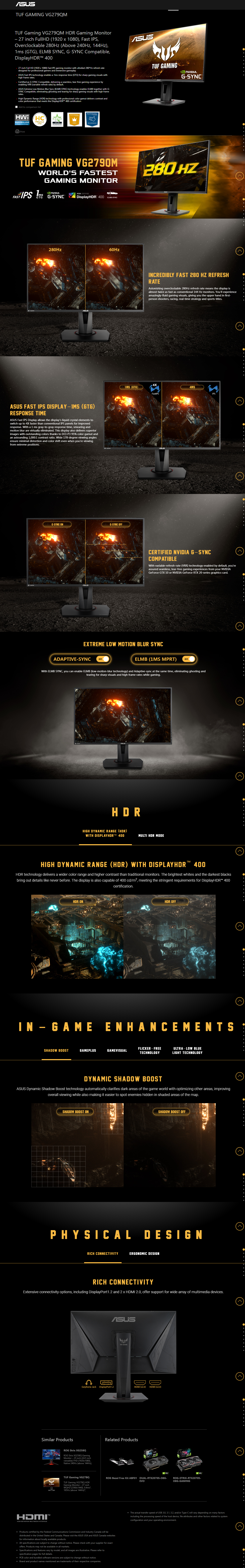 ASUS TUF Gaming VG279QM HDR Gaming Monitor – 27 inch FullHD (1920 x 1080), Fast IPS, Overclockable 280Hz (Above 240Hz, 144Hz), 1ms (GTG), ELMB SYNC, G-SYNC Compatible, DisplayHDR™ 400