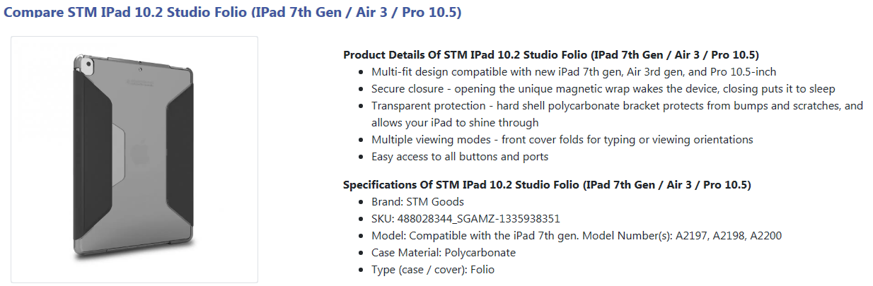 - Multi-fit design - Compatible with the iPad 7th Gen, Air 3, Pro 10.5.