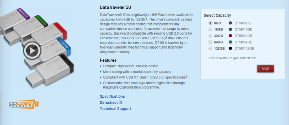 • CUSTOMISABLE WITH YOUR LOGO AND/OR DIGITAL FILES THROUGH KINGSTON'S CUSTOMISATION PROGRAMME