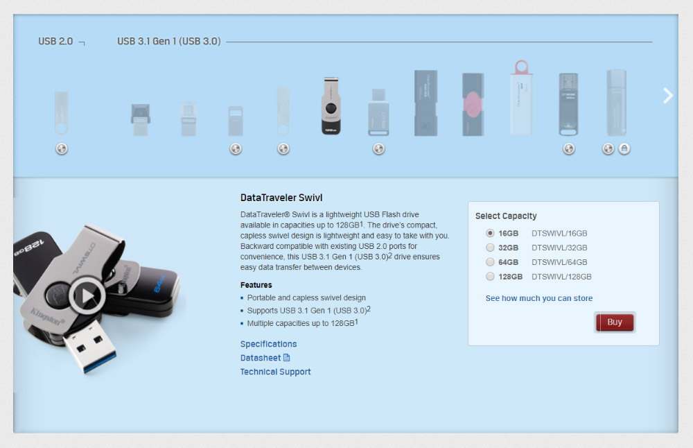 1x KINGSTON DATATRAVELER SWIVL USB3.0 (64GB)