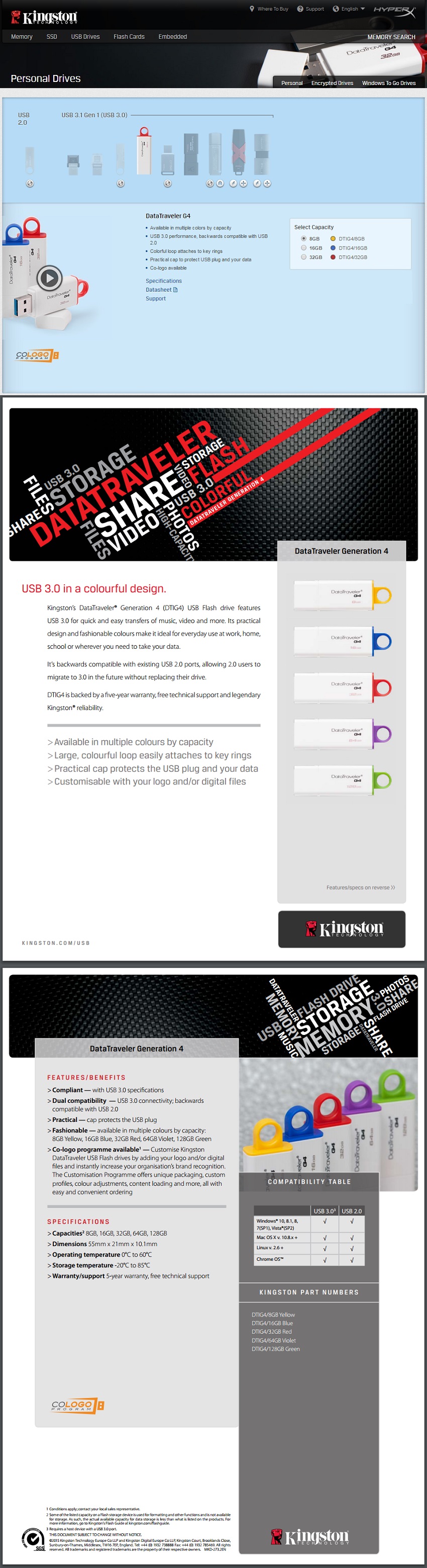 - Fashionable — available in multiple colours by capacity: 8GB Yellow, 16GB Blue, 32GB Red, 64GB Violet, 128GB Green