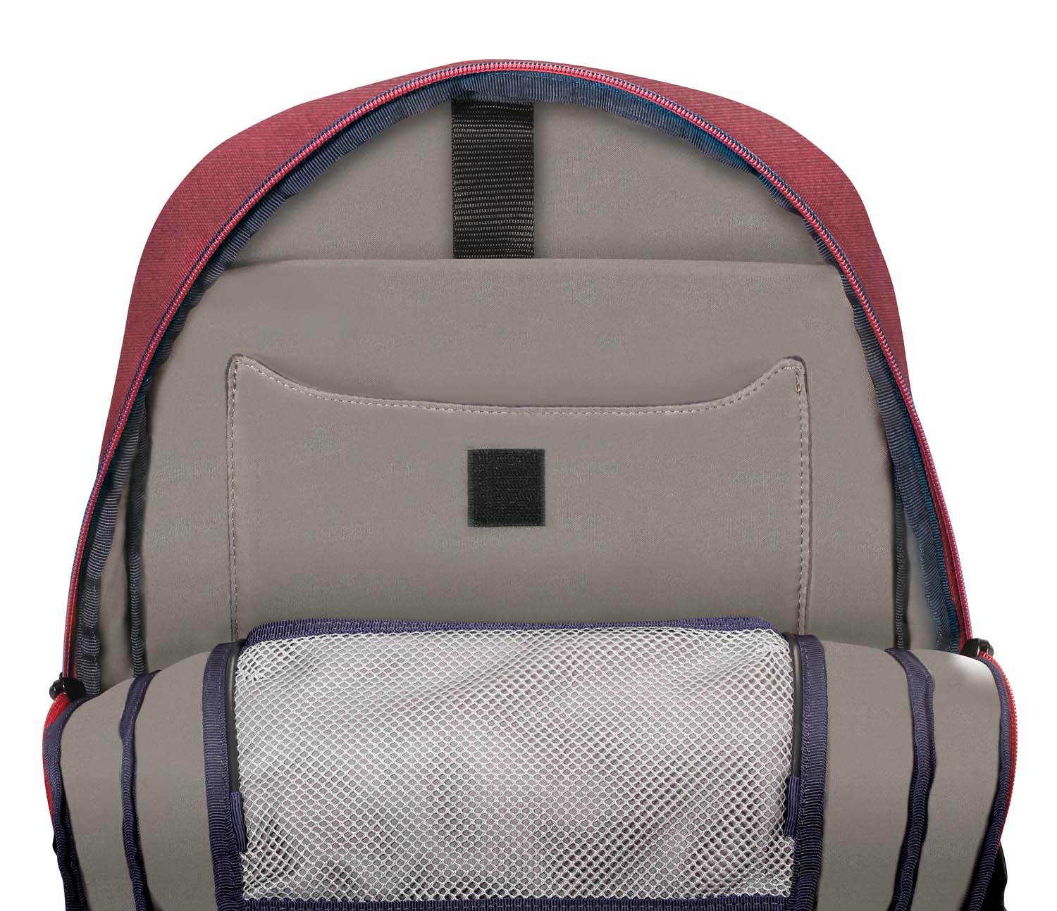 - Compact main compartment with zippered mesh pockets for personal storage