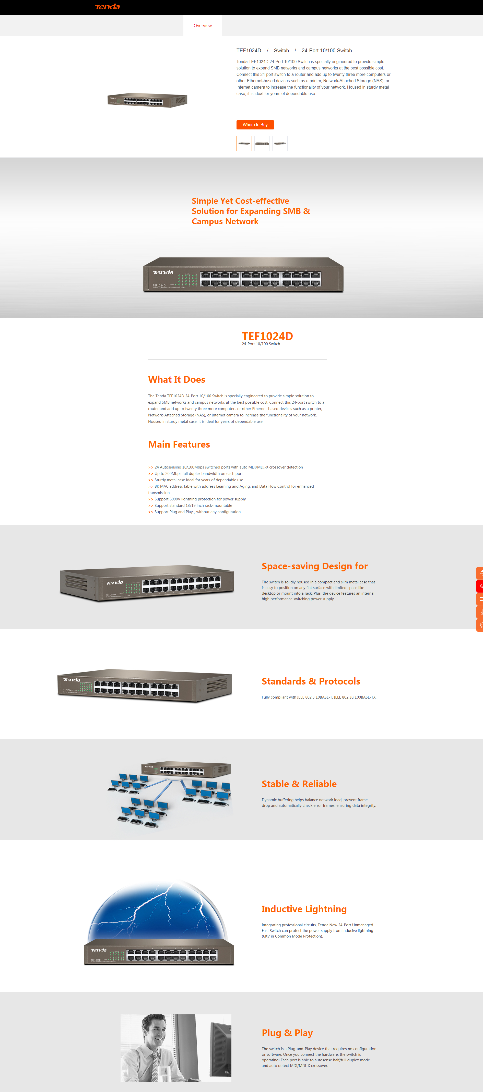 1x Tenda TEF1024D 24-Port 10/100M Switch
