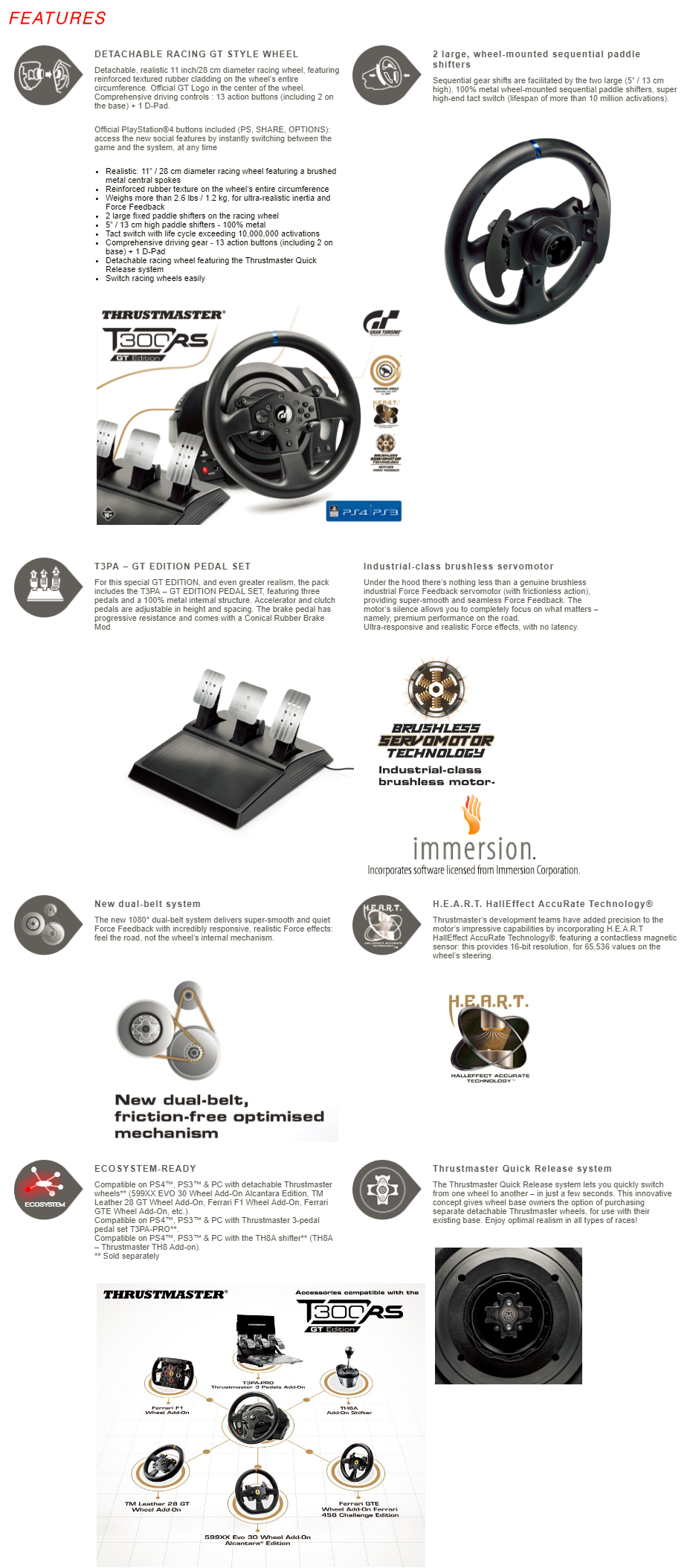 1x Thrustmaster T300 RS GT Racing Wheel for PS4 / PS3 / PC (Included T3PA – GT Editon 3 pedal set)