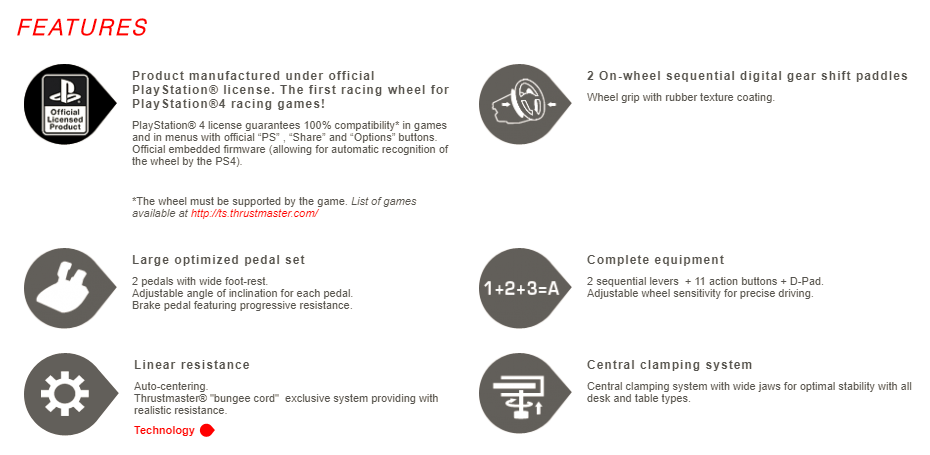- The First PlayStation 4 officially licensed Racing wheel, for all racing games on PlayStation 4; Official embedded firmware (allowing for automatic recognition of the wheel by the PS4)