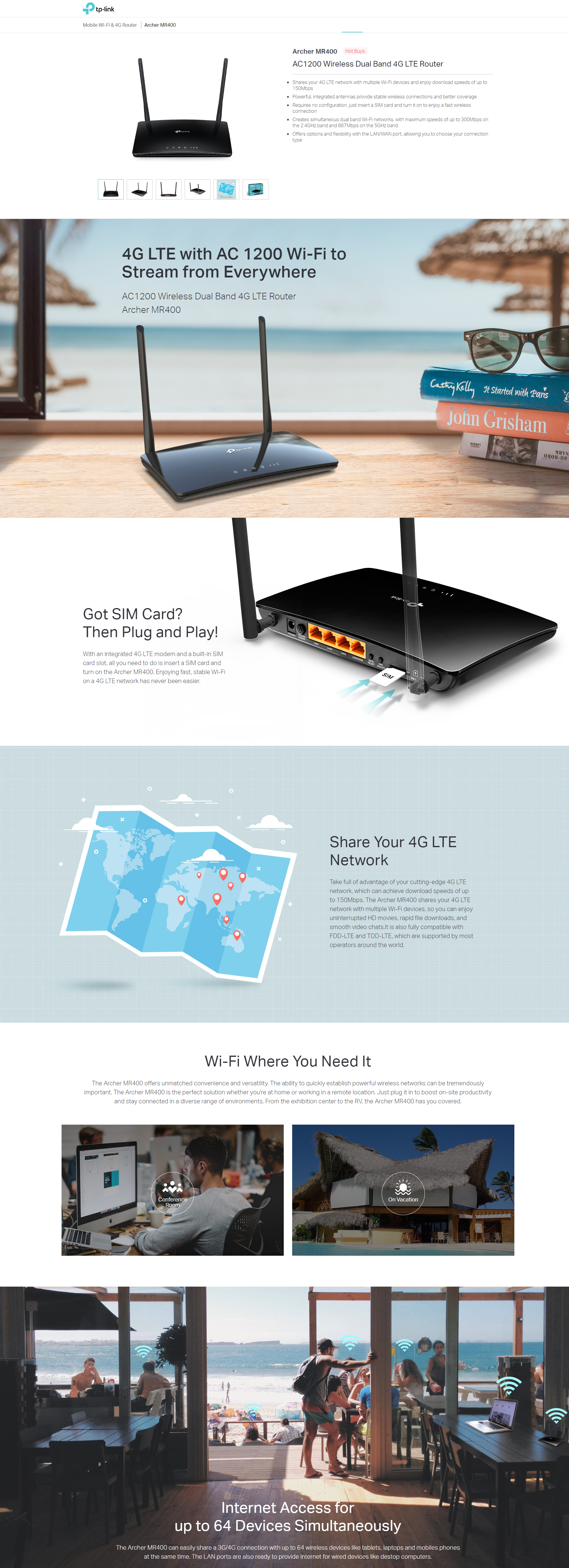 1x TP-Link AC1200 Dual-Band 4G LTE Archer MR400 Router