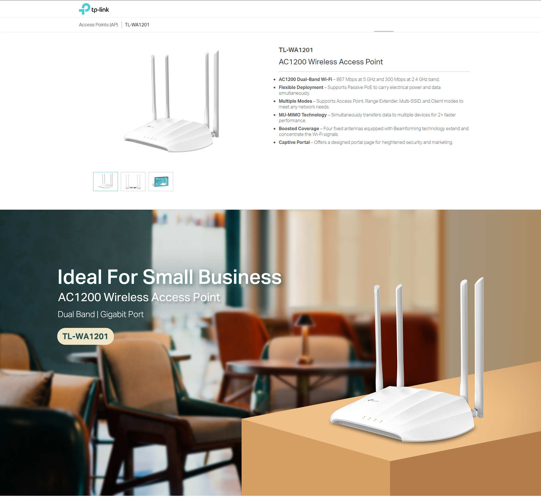1x TP-Link AC1200 TL-WA1201 Wireless Access Point
