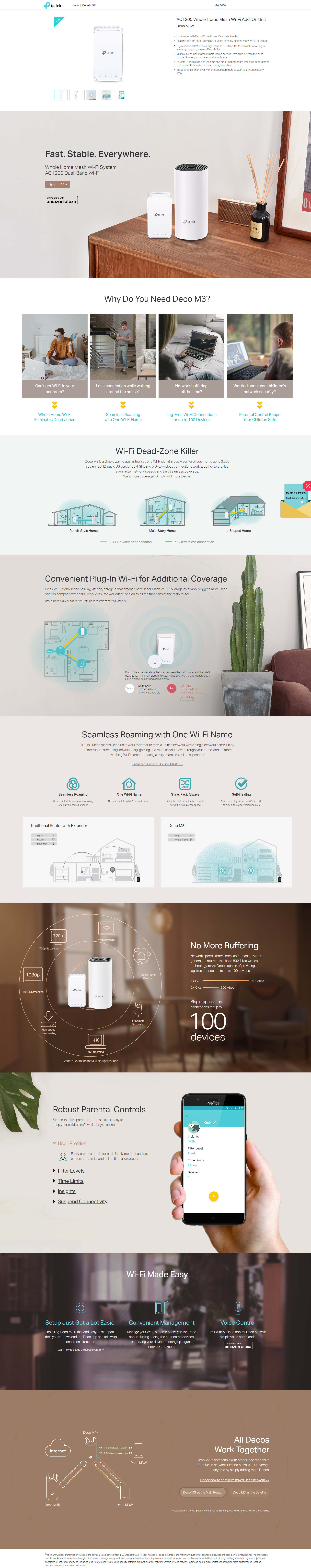 - Enjoy additional Wi-Fi coverage of up to 1,500 sq. ft.† to eliminate weak signal areas by plugging in every Deco M3W.