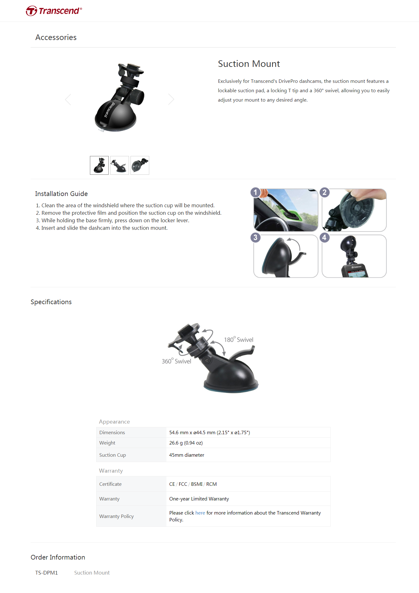 1x TRANSCEND DRIVEPRO CAR Suction Mount