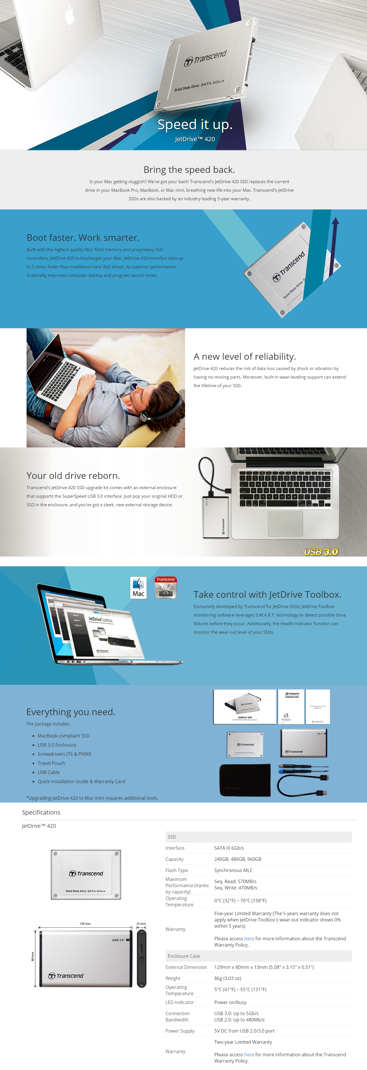 - Transcend JetDrive™ 420 MacBook-compliant SSD (480GB)