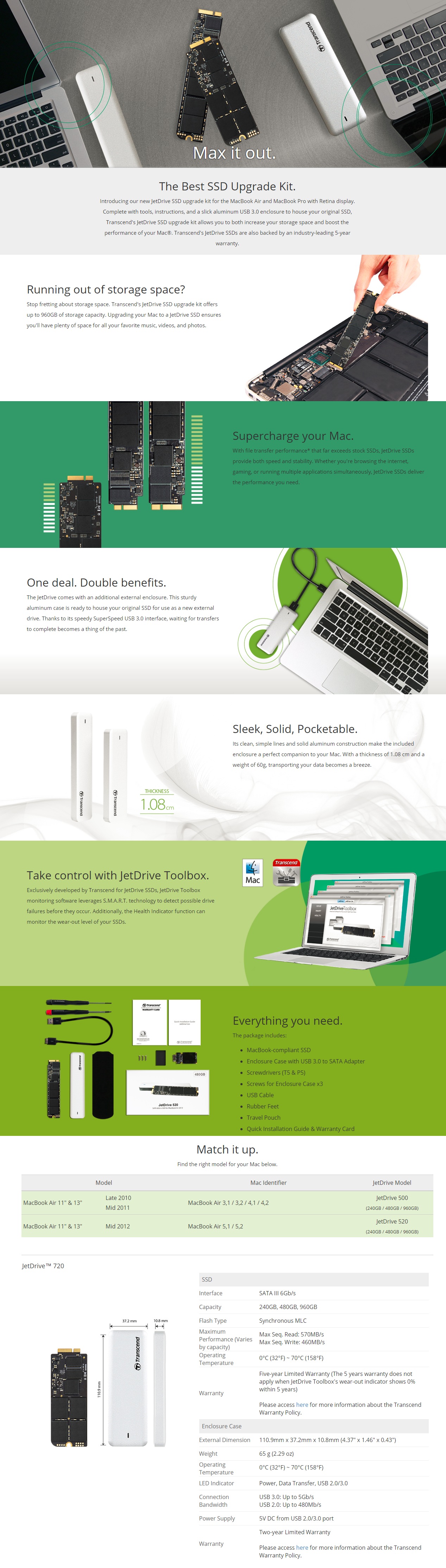 - Transcend JetDrive™ 725 MacBook-compliant SSD (240GB)