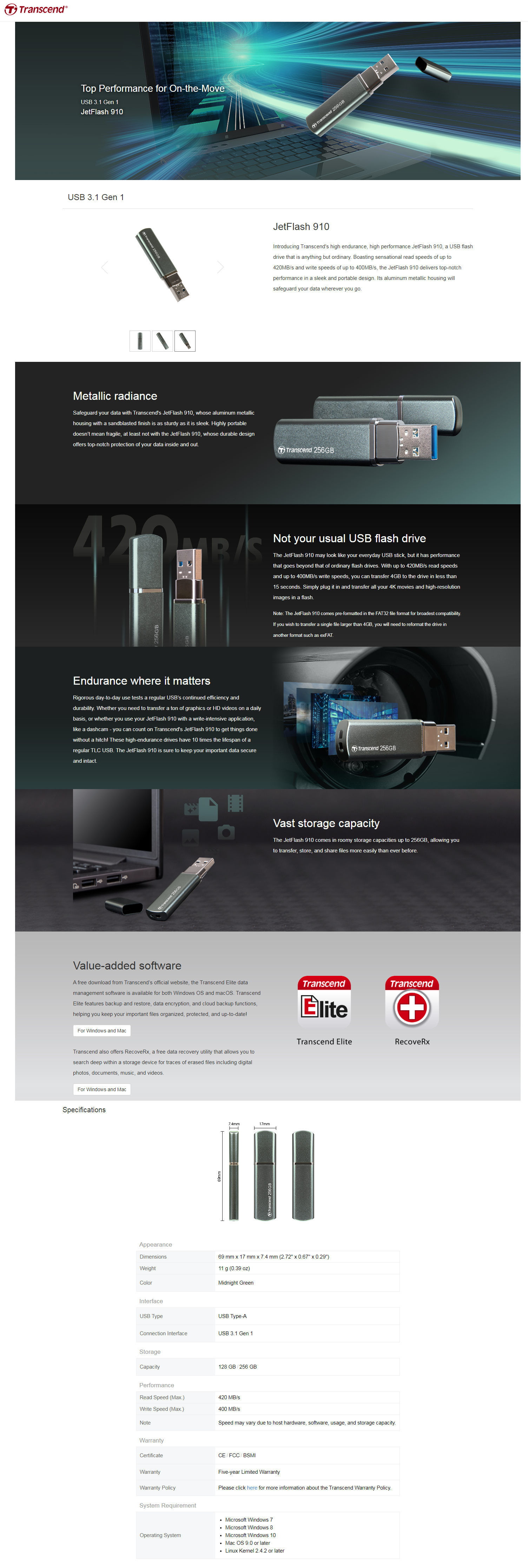 | Product SKU | TRANSCEND USB3.1-Gen-Flash-Drive-JetFlash910 |