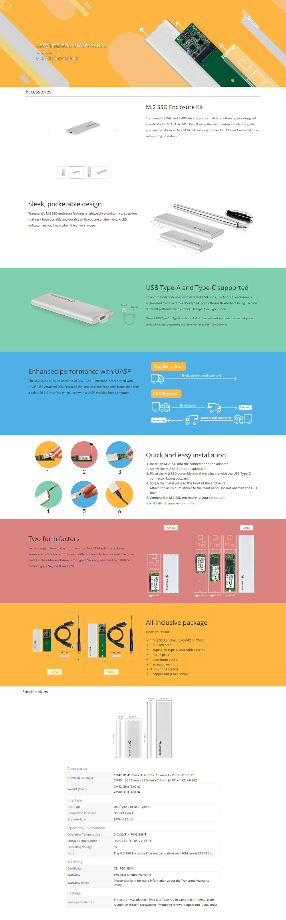 1x Transcend M.2 SSD Enclosure Kit 80mm