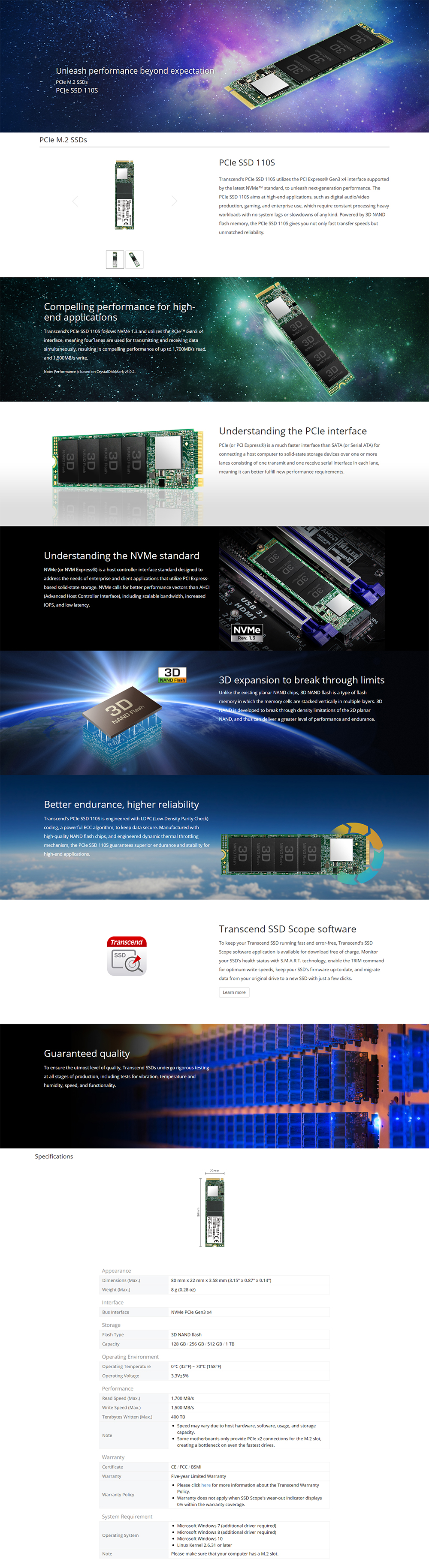 1x Transcend NVMe PCIe Gen3 x4 MTE110s M.2 SSD (3D TLC NAND) 256GB