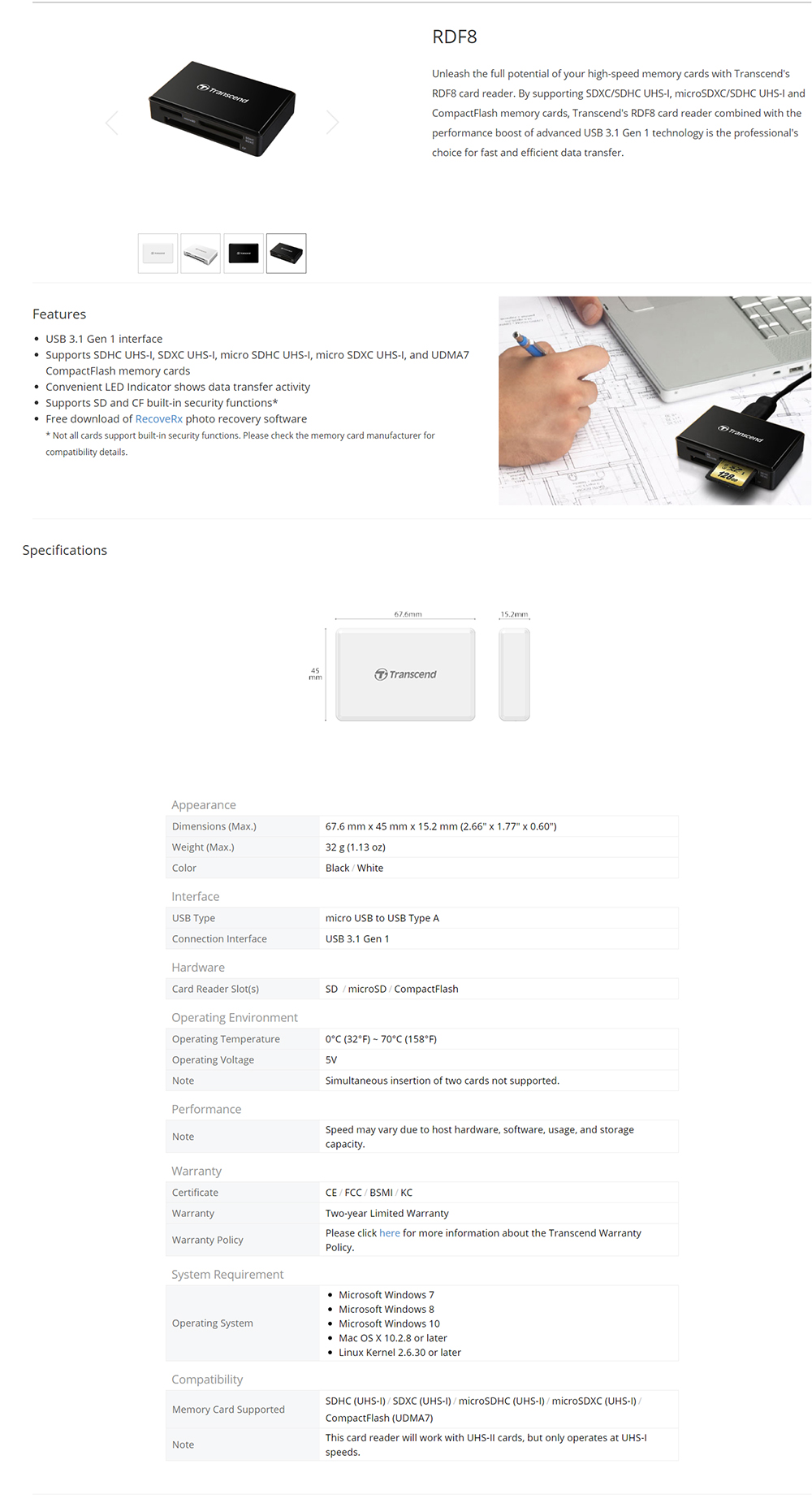 - Supports SDHC(UHS-I)/SDXC(UHS-I)/CF(UDMA7)/MSXC