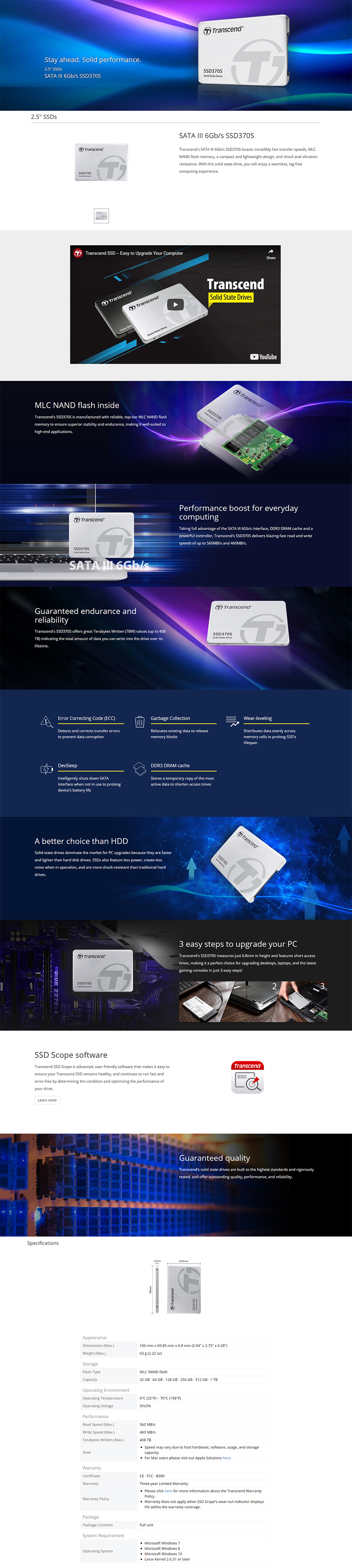 1x Transcend SSD370S 2.5" Sata 3 Solid State Drive (SSD) 1TB