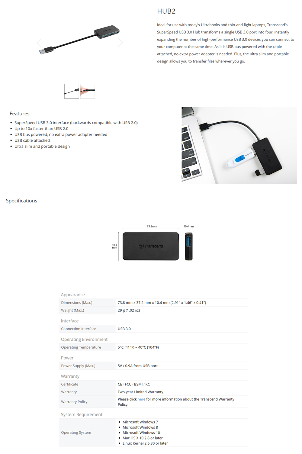 - Supports USB Battery Charging specification v1.2 (HUB3)