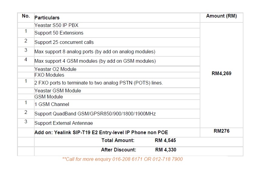 1 x Yealink SIP-T19 + Yeastar S50 COMBO