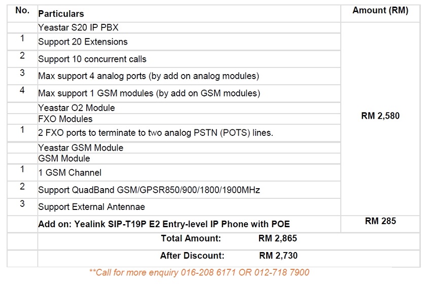 1 x Yealink SIP-T19P + Yeastar S20 COMBO