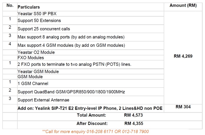 1 x Yealink SIP-T21 + Yeastar S50 COMBO