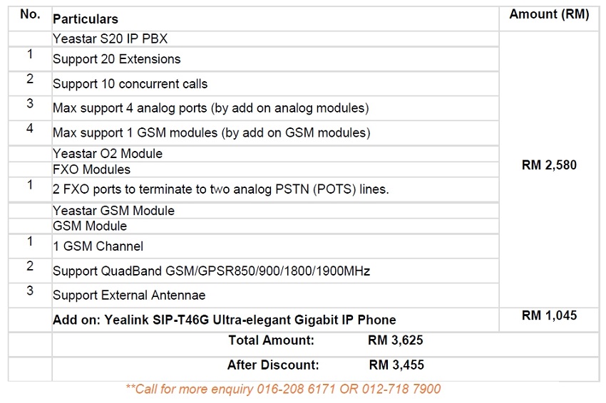 1 x Yealink SIP-T46G + Yeastar S20 COMBO