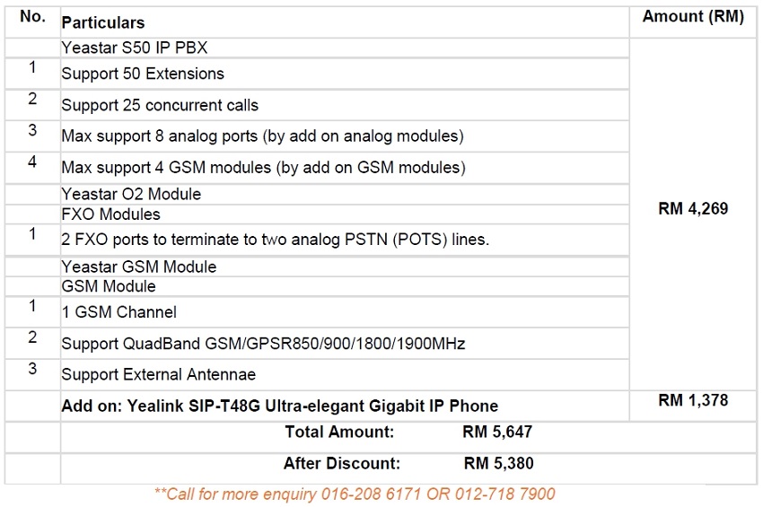 1 x Yealink SIP-T48G + Yeastar S50 COMBO